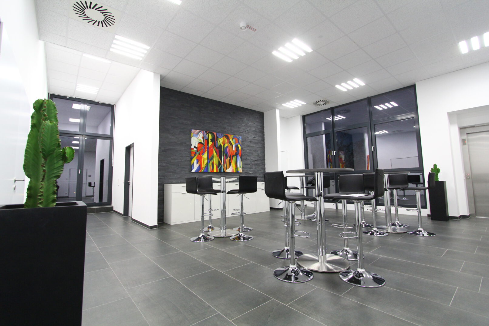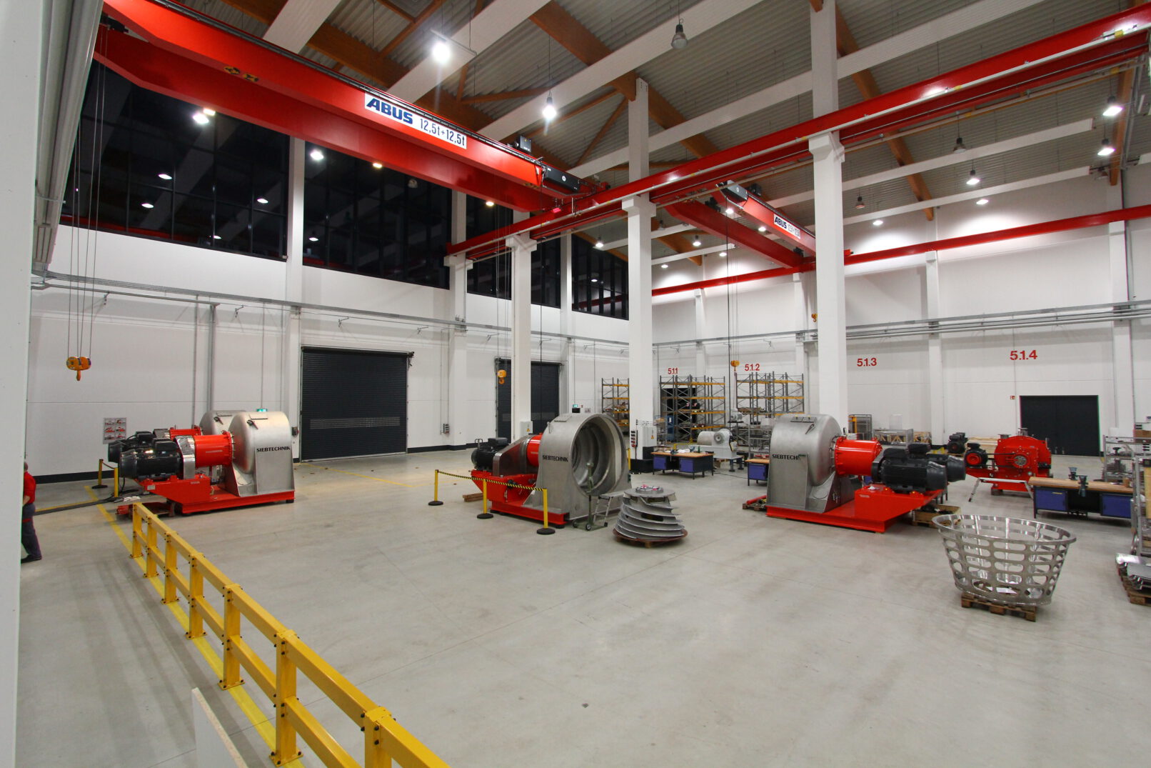Zentrifugentechnologie Zentrum mit einer 2.800 QM großen Montagehalle und 2.400 QM Büroflächen. Einbindung von Bestandsflächen. Koordination der technischen Gewerke. Einbau eines Blockheizkraftwerks.